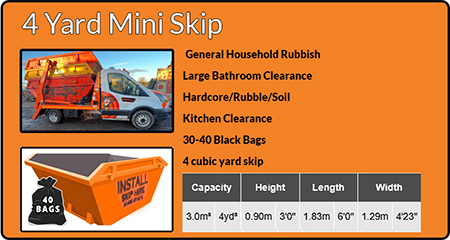 Mini skips being 2 cubic yards and 4 cubic yards.